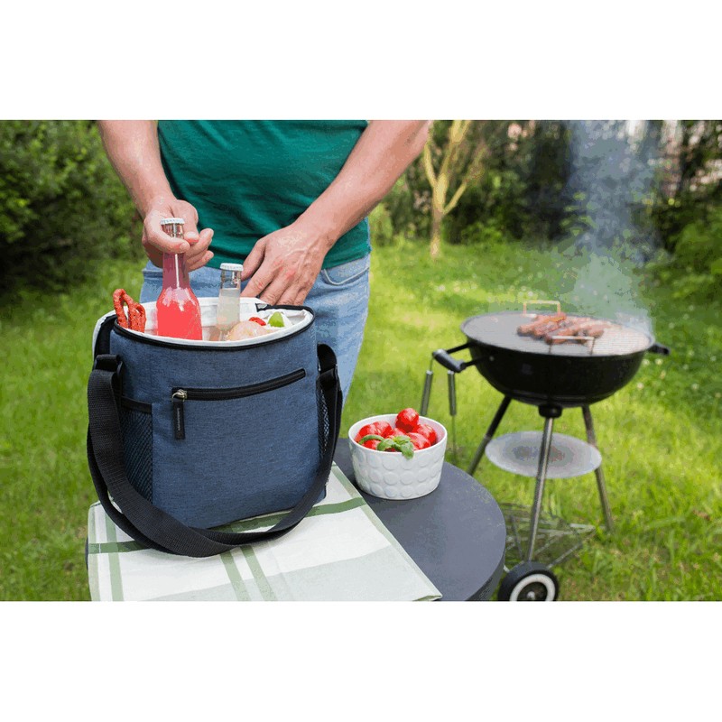 Cooler bag, main compartment and front pocket with zipper, 2 side mesh pockets, carrying handle and adjustable shoulder strap