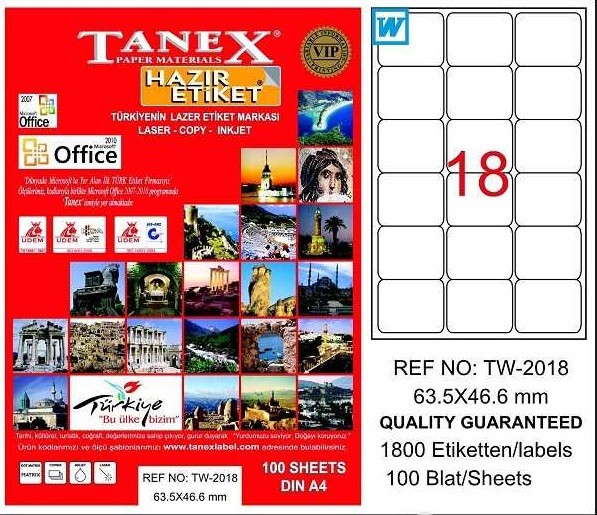 Adhesive label 18 pieced (LABEL) TW- 2018 63.5MM X 46MM