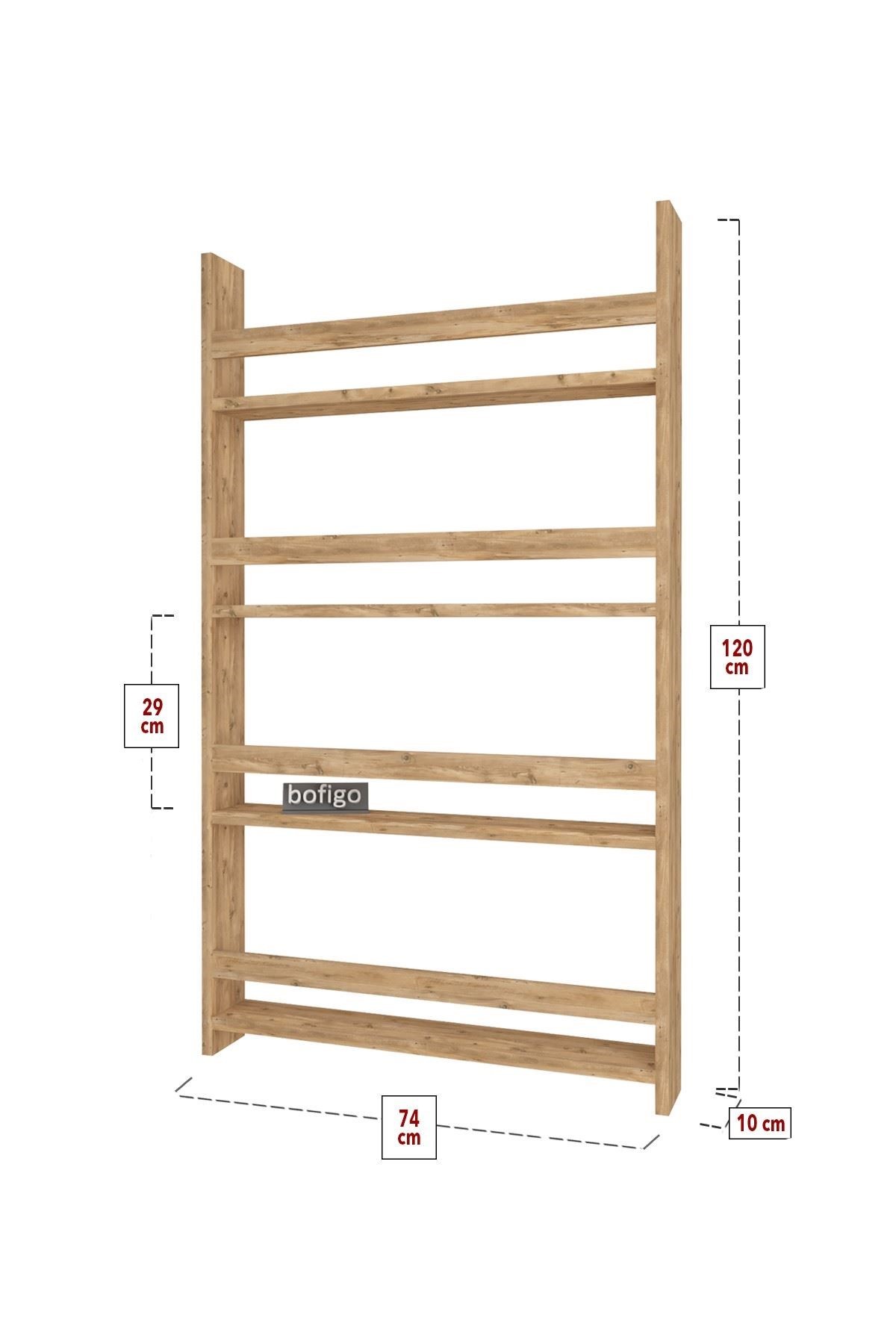 წიგნების 4-დონიანი კედლის თარო ფიჭვის ფაქტურით(ასაწყობ მდგომარეობაში)
