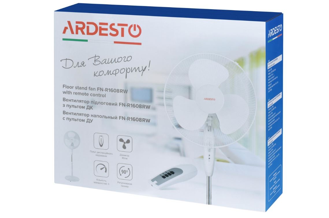 ARDESTO Floor fan, 40см, 45Вт, remote control, white
