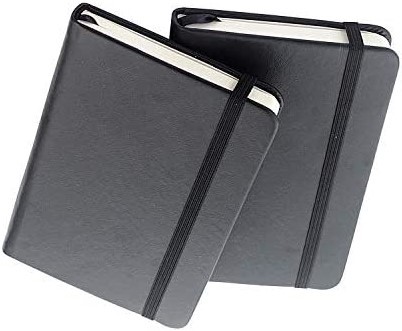 ბლოკნოტი ტყავის მყარი ყდით, რეზინით და სანიშნით, ხაზი A6 120 ფურცელი - შავი
