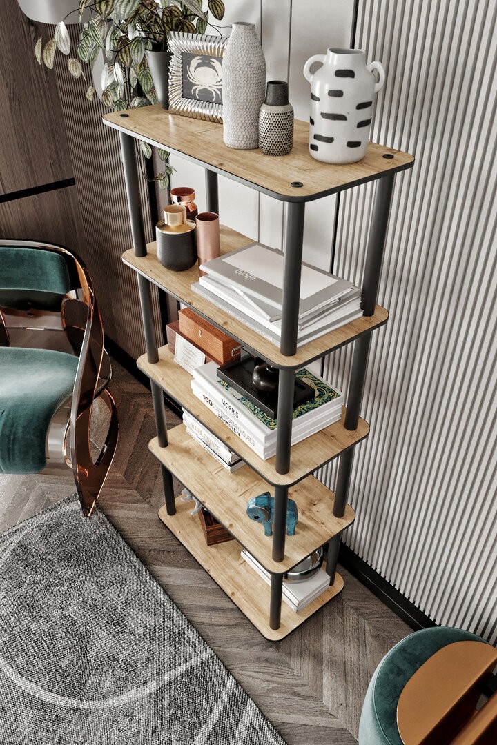 5 დონიანი თარო ფიჭვის ფაქტურით (30*60) (MS604)(ასაწყობ მდგომარეობაში)
