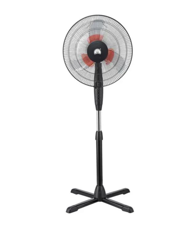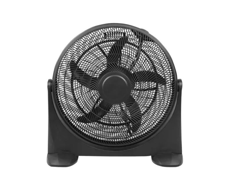 თეთრი ფერის დასადგამი ვენტილატორი დისტანციური მართვის პულტით და მრგვალი საყრდენით. მოდელი დამზადებულია საიმედო, პრაქტიკული და გამძლე მასალისგან.