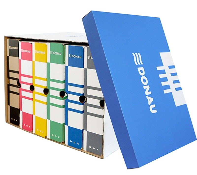 საარქივე ყუთი მუყაო ლურჯი წინიდან ხდადი DONAU 363x545x317მმ (საქაღალდის გარეშე)
